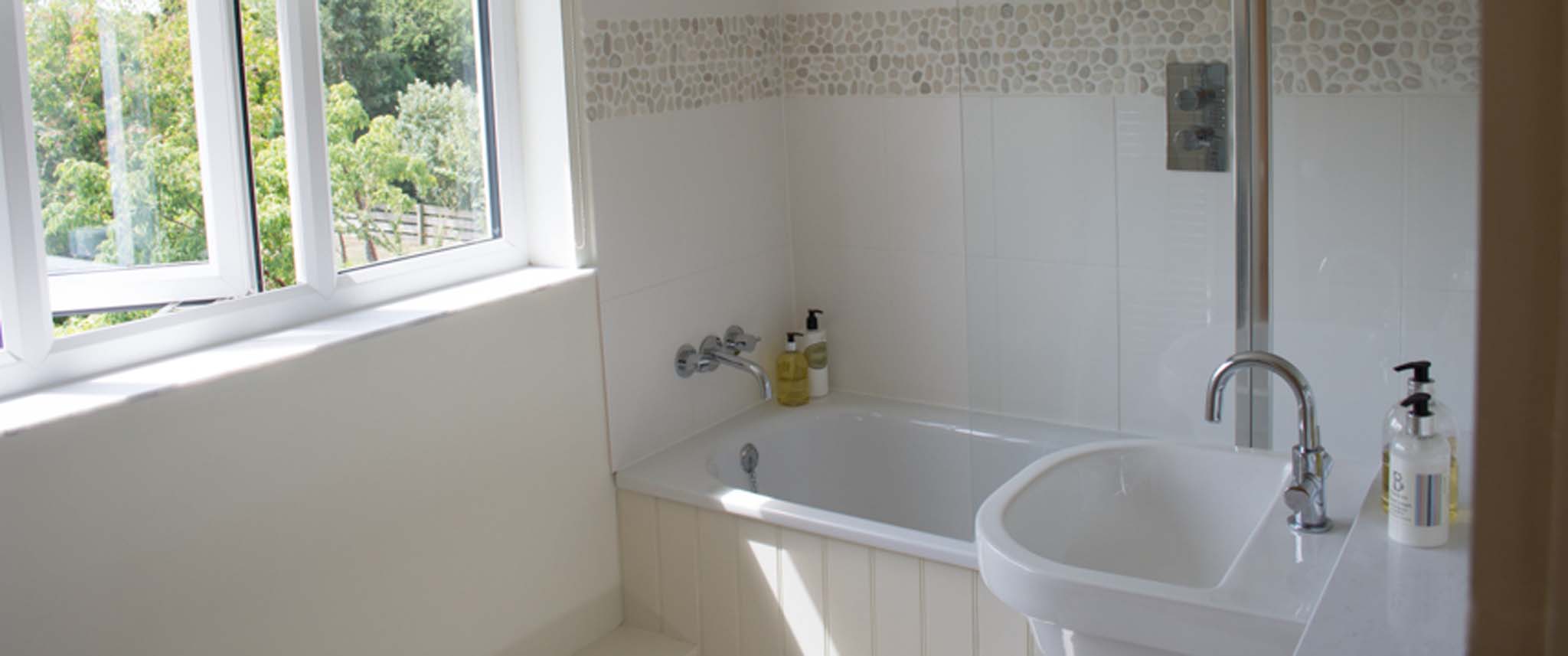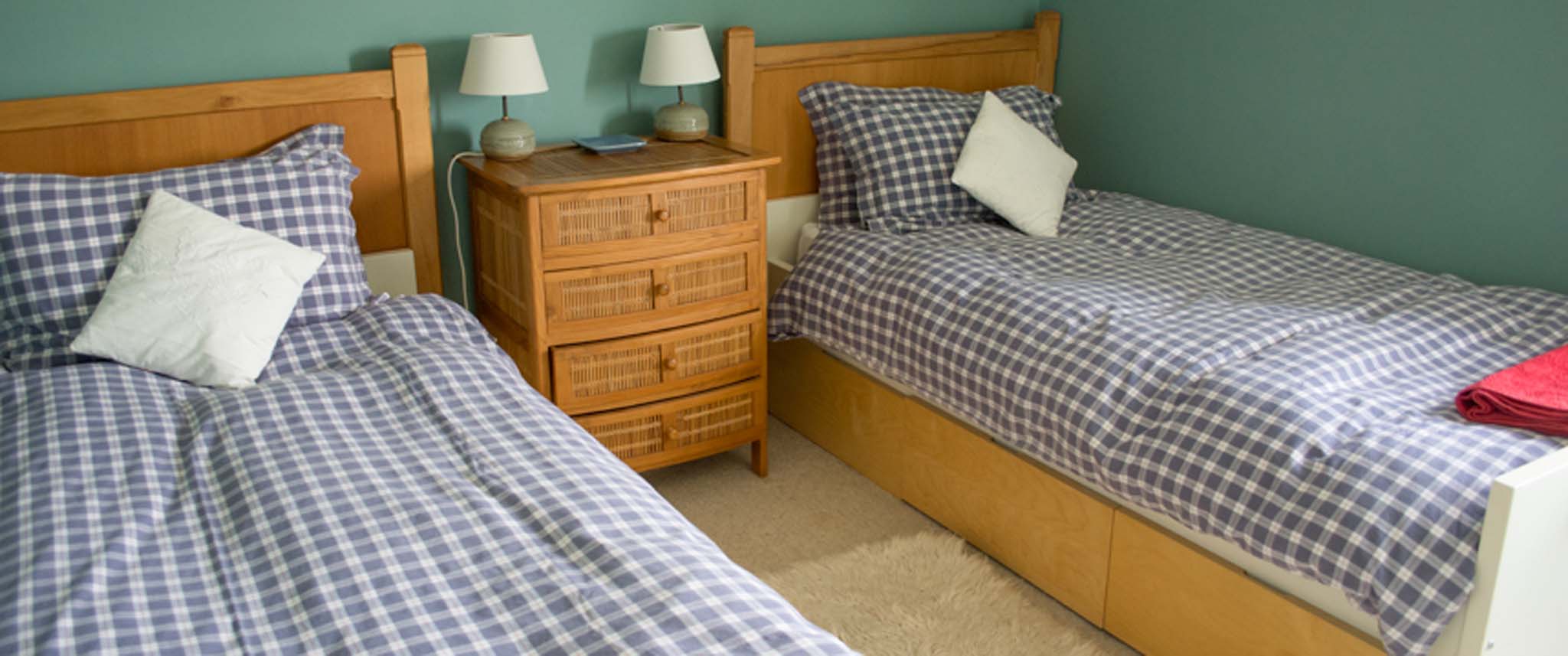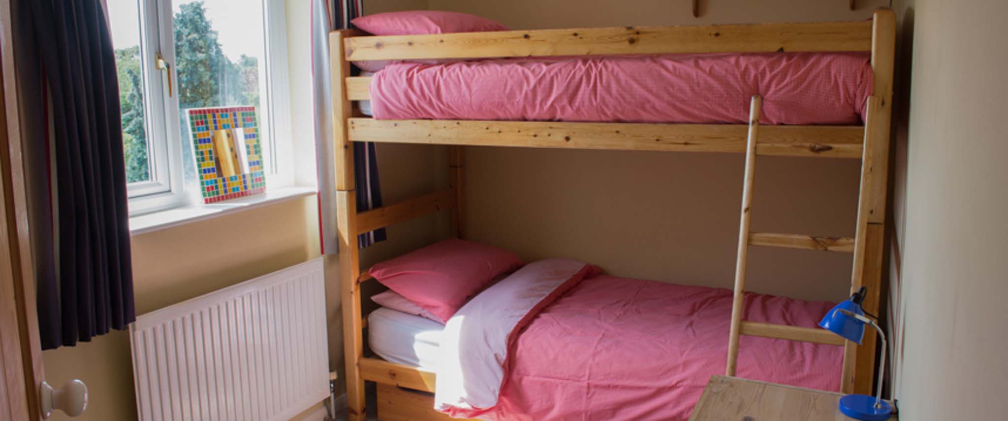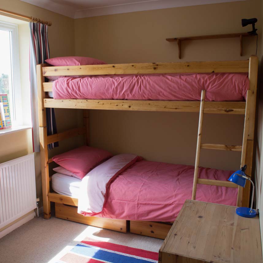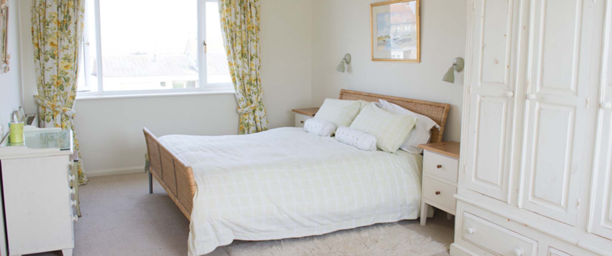 21 Dale End sleeps six. The large main bedroom, with its new ensuite bathroom, has a kingsize bed and ample room for a travel cot. This is a lovely, bright room with windows looking north over to the marshes and the sea, and south over the garden. The second and third bedrooms have twin and full size bunk beds respectively. The family bathroom has a power shower over the bath. An airing cupboard opens onto the landing.