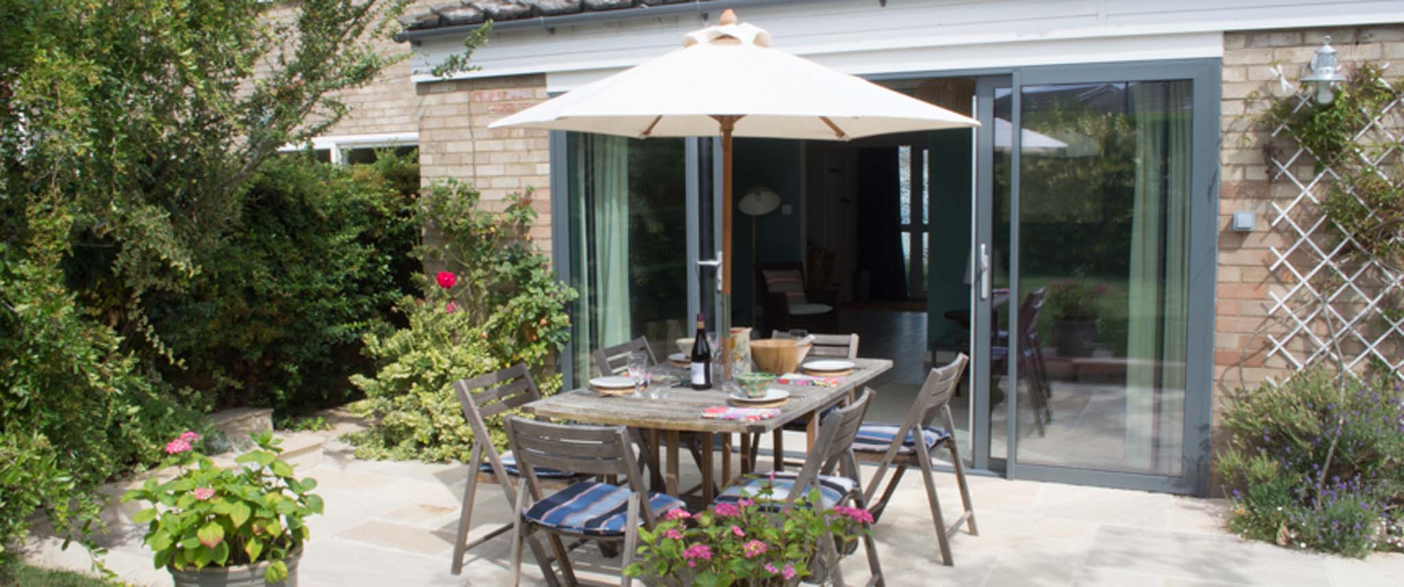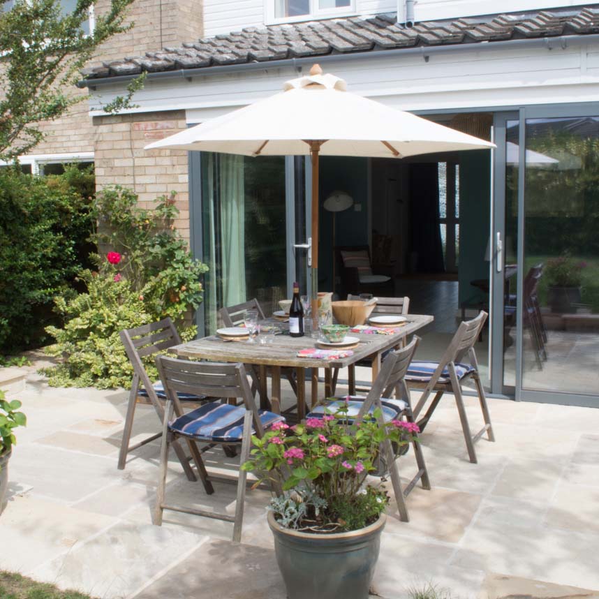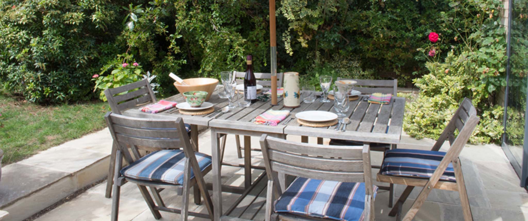 The large sunny sitting room has a new smart TV incorporating all the usually available Freesat stations, radio and a wide range of internet connected apps for catch up and subscription delivery (including Netflix & Amazon). Additionally there are DVD and CD players. You’ll also find lots of books, maps, games and puzzles to entertain all ages! Patio doors from this room open onto the terrace and enclosed, south-facing sun-trap garden. A garden table, chairs and umbrella are provided, as well as deck chairs and a barbeque.