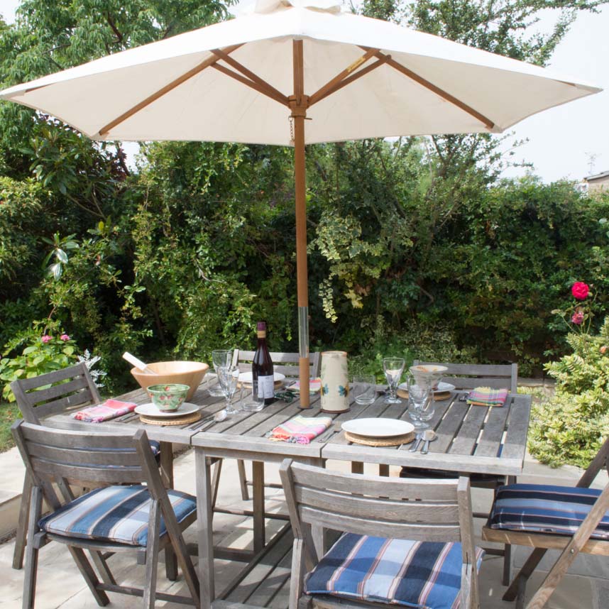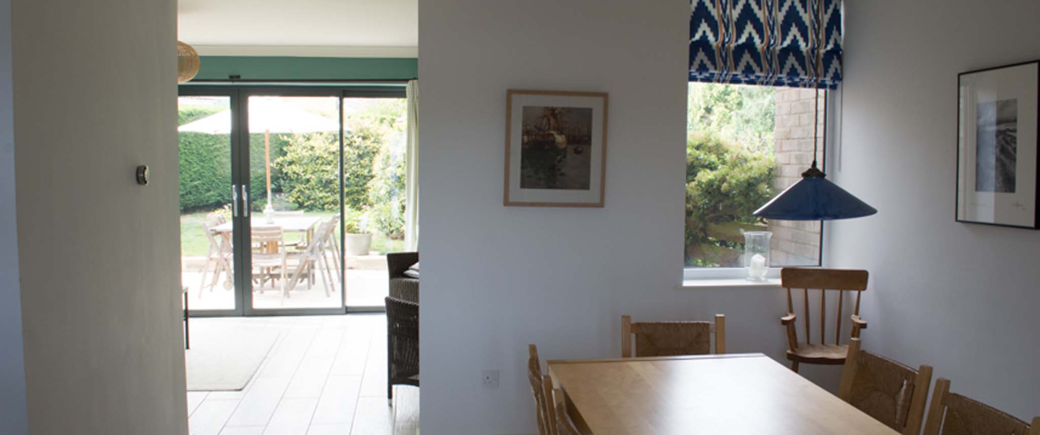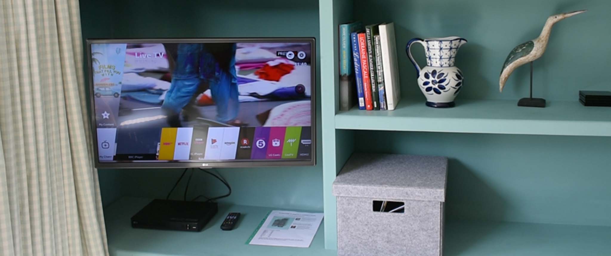 The large sunny sitting room has a new smart TV incorporating all the usually available Freesat stations, radio and a wide range of internet connected apps for catch up and subscription delivery (including Netflix & Amazon). Additionally there are DVD and CD players. You’ll also find lots of books, maps, games and puzzles to entertain all ages! Patio doors from this room open onto the terrace and enclosed, south-facing sun-trap garden. A garden table, chairs and umbrella are provided, as well as deck chairs and a barbeque.