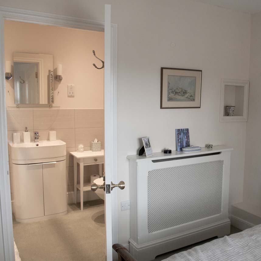 Our "Master" bedroom is large and airy with views over the rooftops to the countryside. It has a king size bed with top of the range mattress and a brand new en-suite shower room.